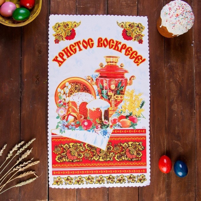 Рушник — один из самых древних и символичных предметов, дошедших до наших дней и не потерявших своего назначения. Пасхальный рушник (или салфетка) появился с принятием христианства на Руси. На нём изображены красивые православные храмы, религиозная символика и надписи «Христос Воскрес».