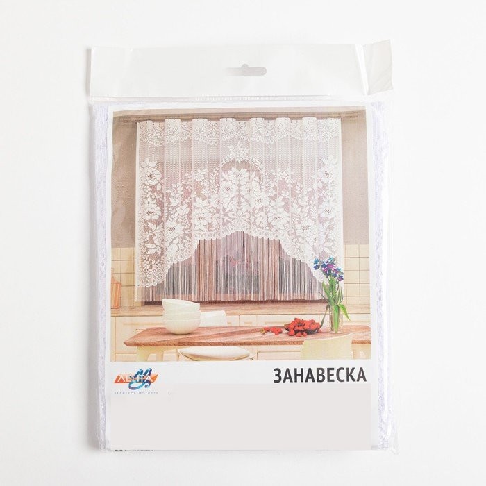 Тюль кухонная без шторной ленты, 169×162 см, белый, 100% п/э