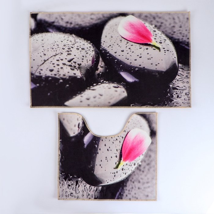 Набор ковриков для ванны и туалета Доляна «Камни», 2 шт: 40×45, 45×75 см