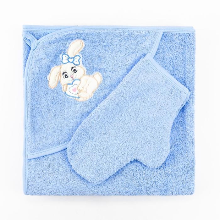 Набор для купания (полотенце-уголок, рукавица), размер 100×110 см, цвет голубой (арт. К24)