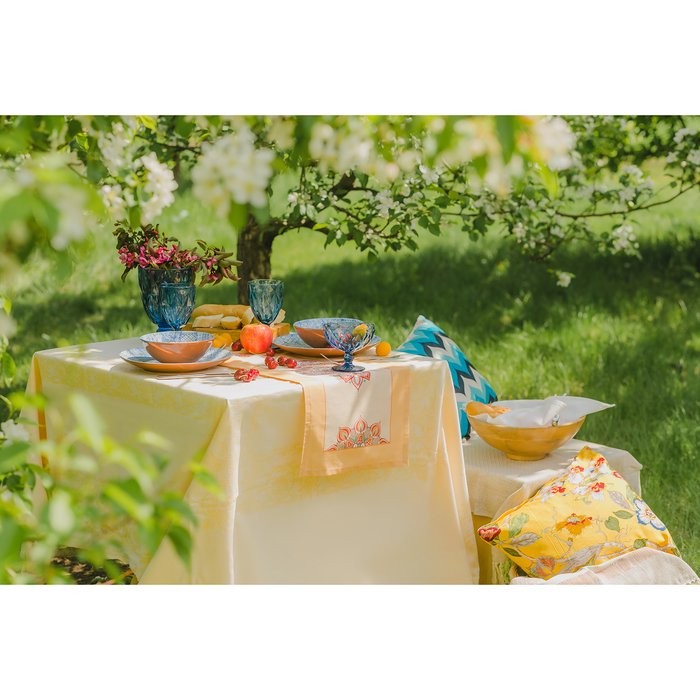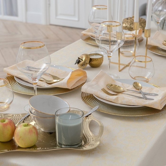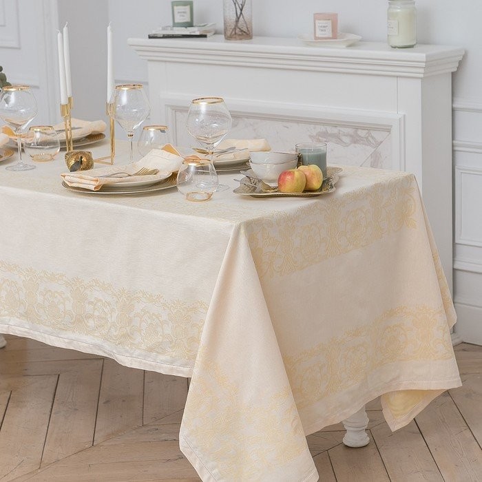 Столовый набор «Этель» (скатерть 150×300 см, салфетки 45×45 см — 12 шт.) цвет шампань, хл. с ВМГО