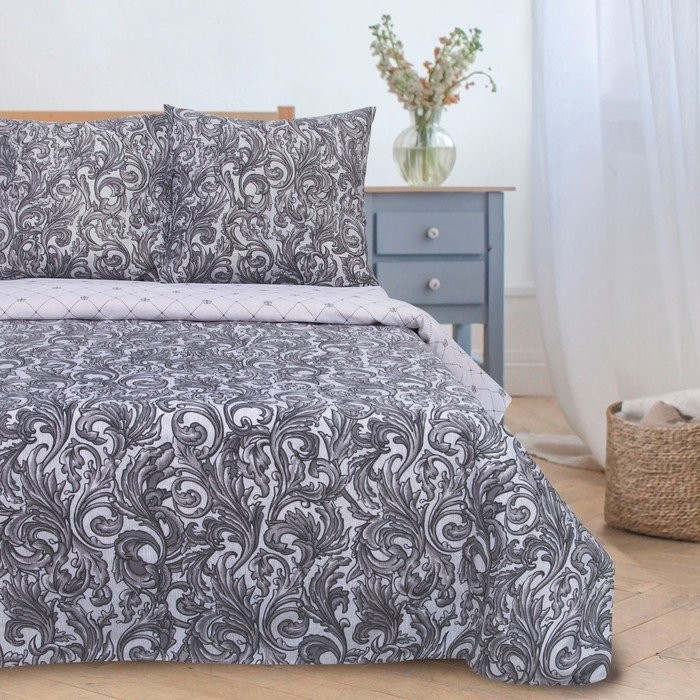Постельное белье «Этель» 2 сп Вензель серебро 175*215 см, 200*220 см,70*70 см -2 шт