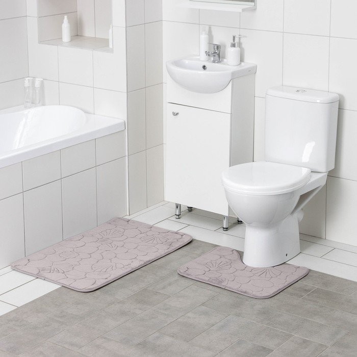 Набор ковриков для ванны и туалета Доляна «Галька, ракушки», 2 шт: 40×50, 50×80 см, цвет бежевый