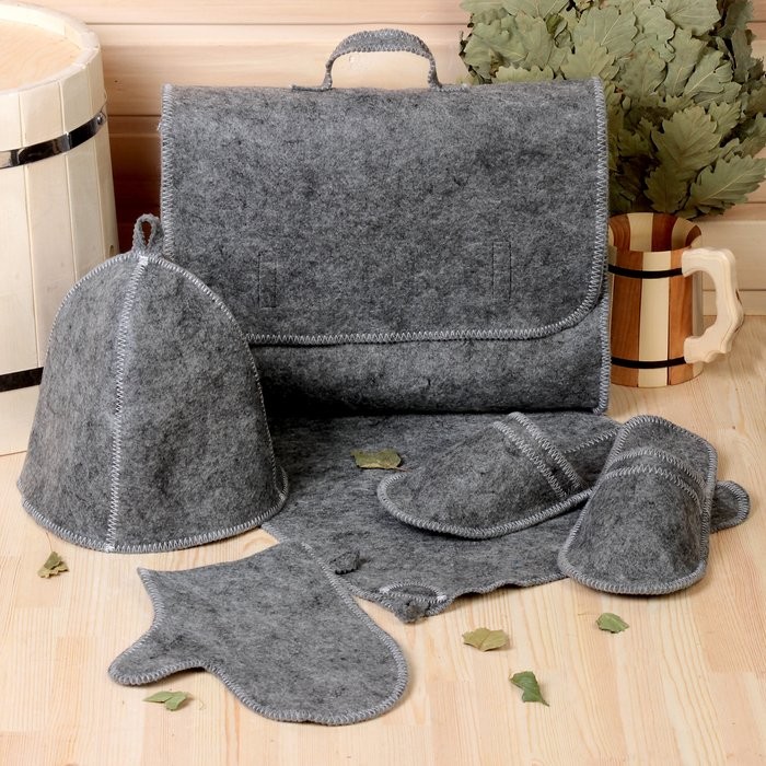 Для комфортного отдыха в парной возьмите с собой набор банных принадлежностей. Предметы из этого комплекта предохраняют тело от перегрева и являются средствами индивидуального пользования. Влажные изделия рекомендуется сушить в расправленном виде на горизонтальной поверхности. Принадлежности из войлока и фетра стирайте вручную при температуре воды 30 °C.