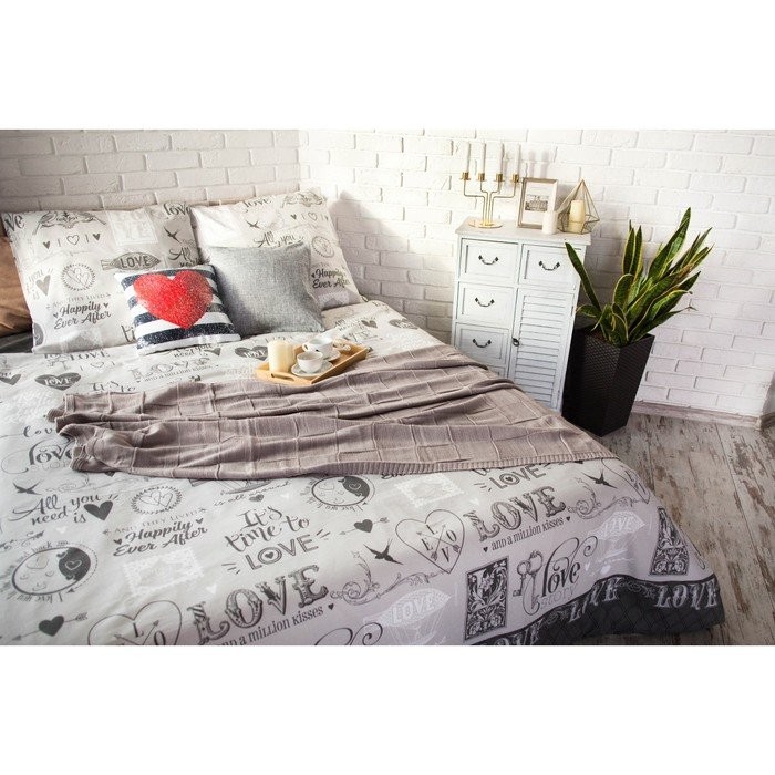 Постельное бельё «Этель» 1.5 сп Love 143*215 см, 150*214 см, 70*70 см -2 шт