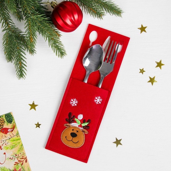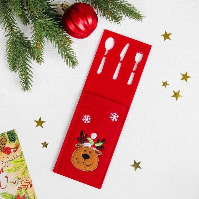 Конверт сделан из фетра и имеет праздничный дизайн.