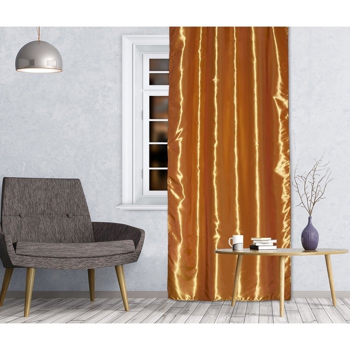 Штора портьерная 143×260 см, тафта, цвет золотой, на шторной ленте, 100% полиэстер