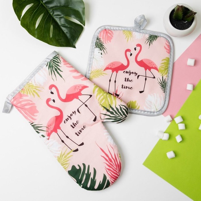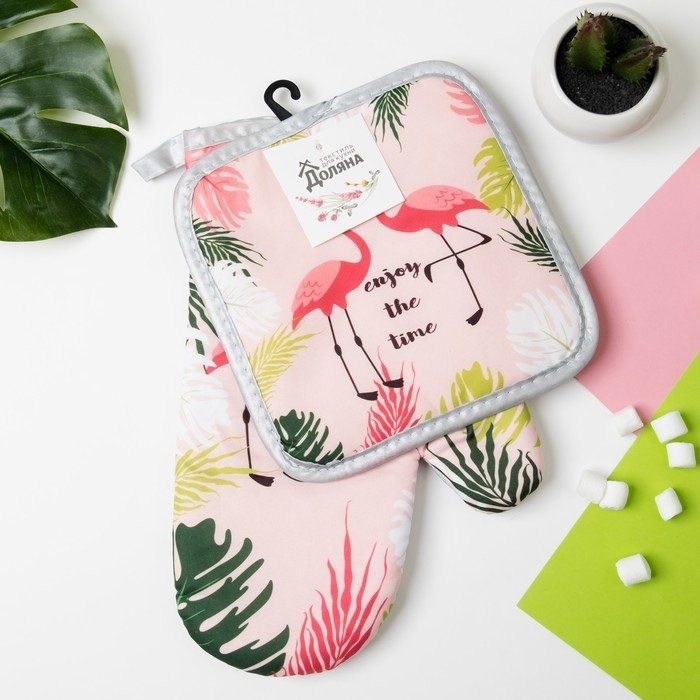 Кухонный набор Доляна Enjoy, прихватка 16*16 см, рукавица 26*17 см,100% п/э