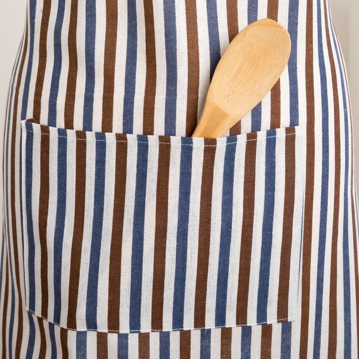 Набор Доляна фартук/прихватка/варежка, Полоска син-корич,100%пэ, рогожка 200 гр/м