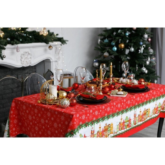 Скатерть Доляна «Новый год: Волшебный город» 220×149 см, 100% хлопок, 164 г/м2