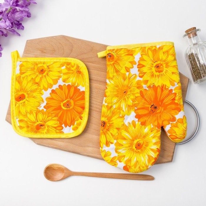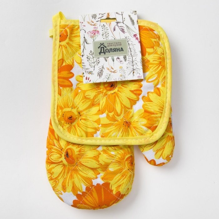 Кух. набор 2 пр. Доляна"Cолнечный»,прихватка 17×17 см, рукавица 26×16 см,100% п/э