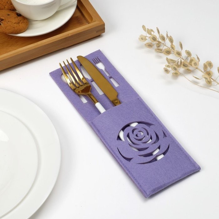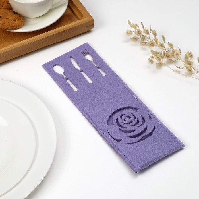 Конверт для столовых приборов Доляна «Роза» цвет сиреневый, 9×25 см