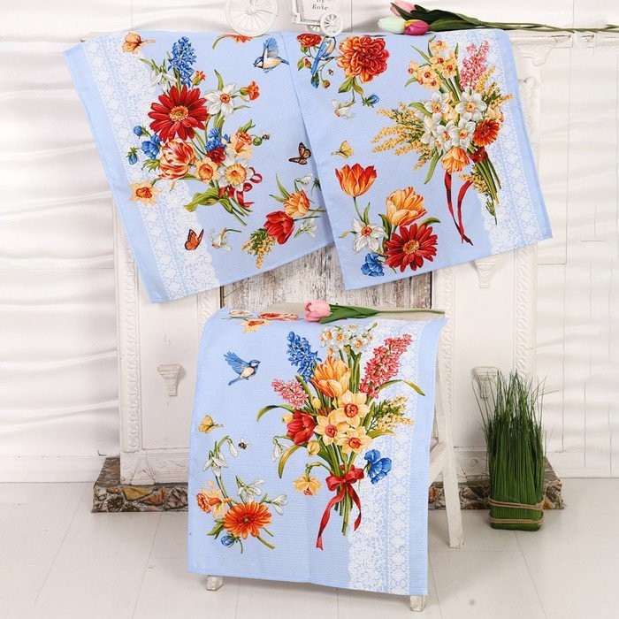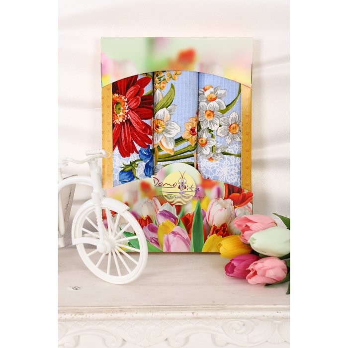 Набор полотенец в коробке Цветы для любимых 45×60 см, 3 шт, голубой, вафля, 170 гр/м2, хлопок 100%