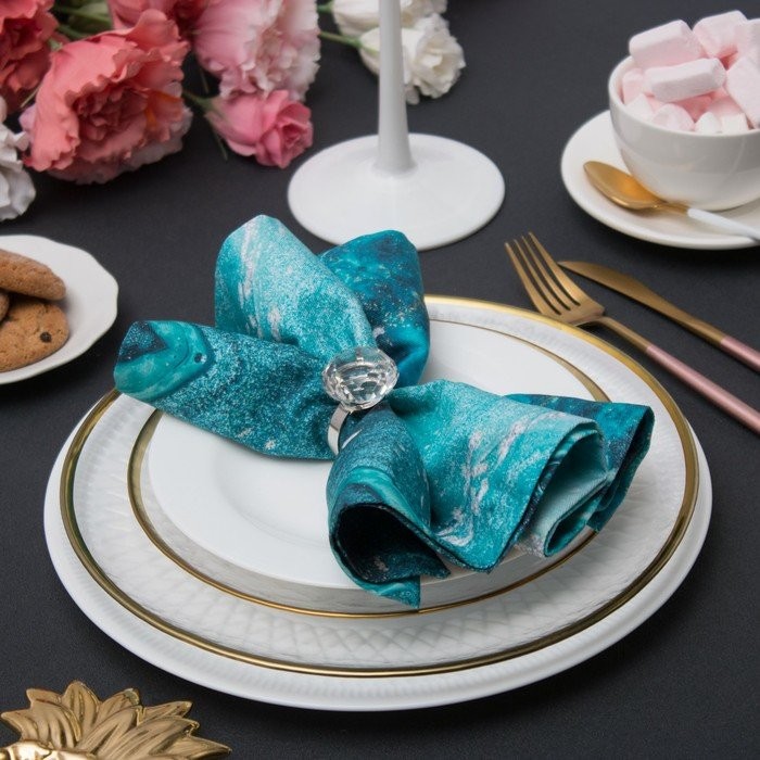 Набор салфеток с декорат. кольцами «Бирюза» 46×46 см — 2 шт, 100% хл, саржа 190гр/м2