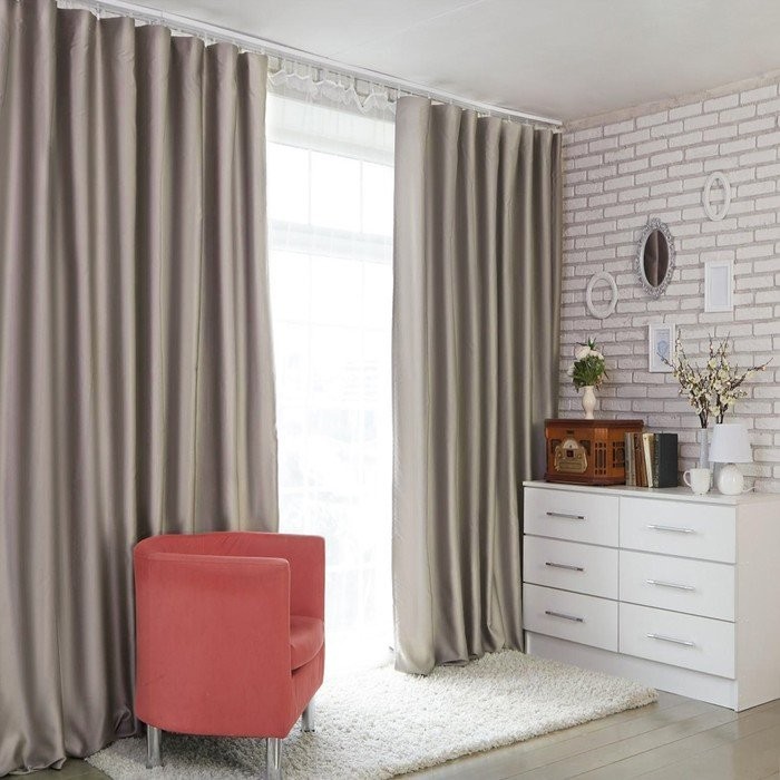 Штора портьерная «Этель» 130×300 см, двусторонний блэкаут, цвет Серебряный, пл. 240 г/м², 100% п/э
