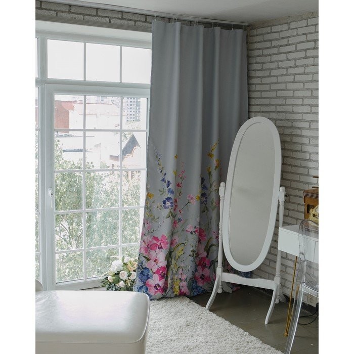 Штора портьерная Этель «Акварель» цв.розовый, 145*265см, пл. 210 г/м2, 100 п/э
