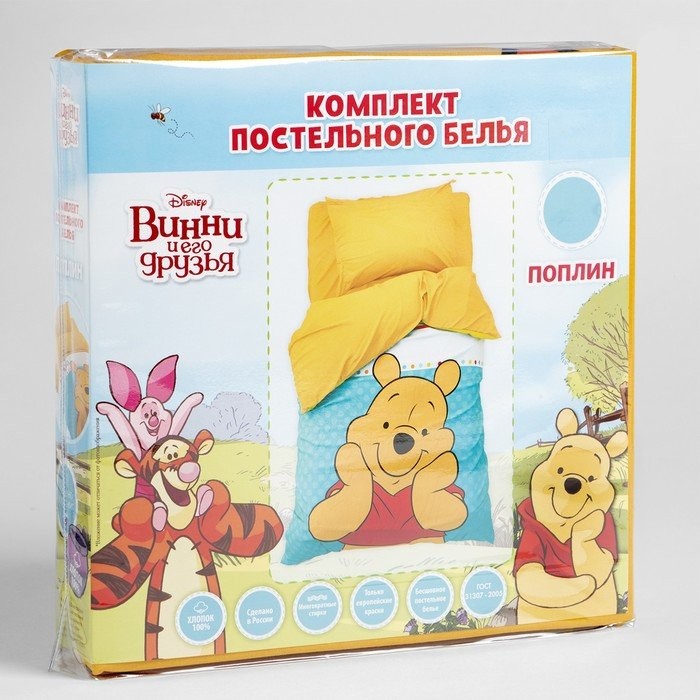 Постельное бельё 1,5 сп «Медвежонок Винни» 143×215 см, 150×214 см, 50×70 см -1 шт., поплин 125 г/м2