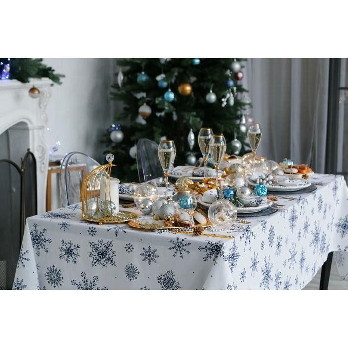 Скатерть Доляна «Новый год: Синие снежинки» 180×149 см, 100% хлопок, 164 г/м2