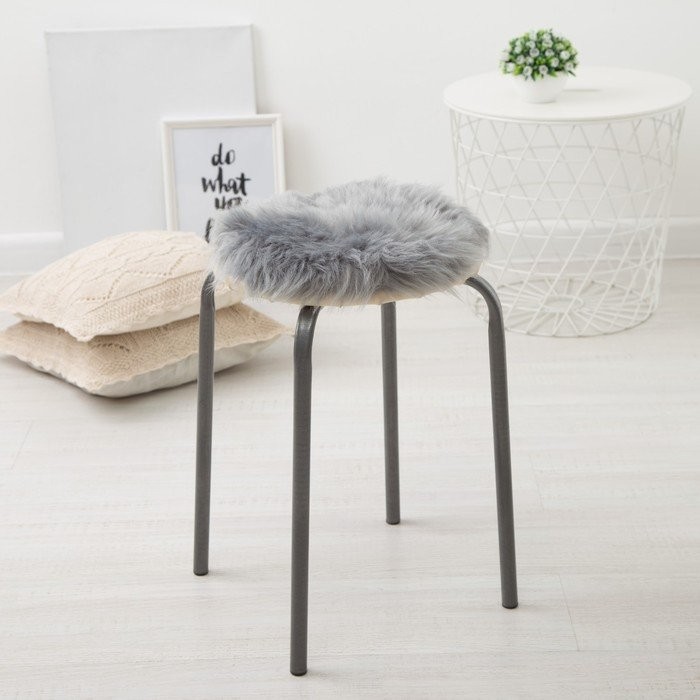 Сидушка на стул меховая Доляна «Пушинка» цв.серый d 30 cm,100% п/э