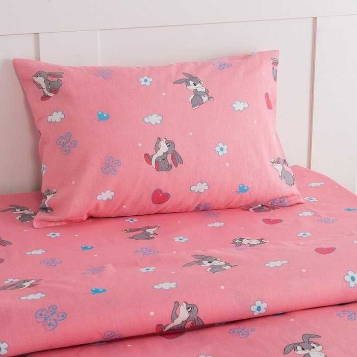 Постельное бельё Экономь и Я 1,5 сп. «Зайки» цвет розовый, 145×210, 150×210, 50×70 см-1 шт, бязь 120 гр/м2