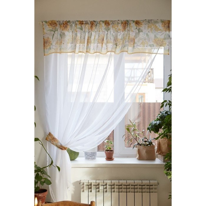 Тюль с подхватом и ламбрекеном «Солнечные цветы» 250х200см, 100% п/э, вуаль
