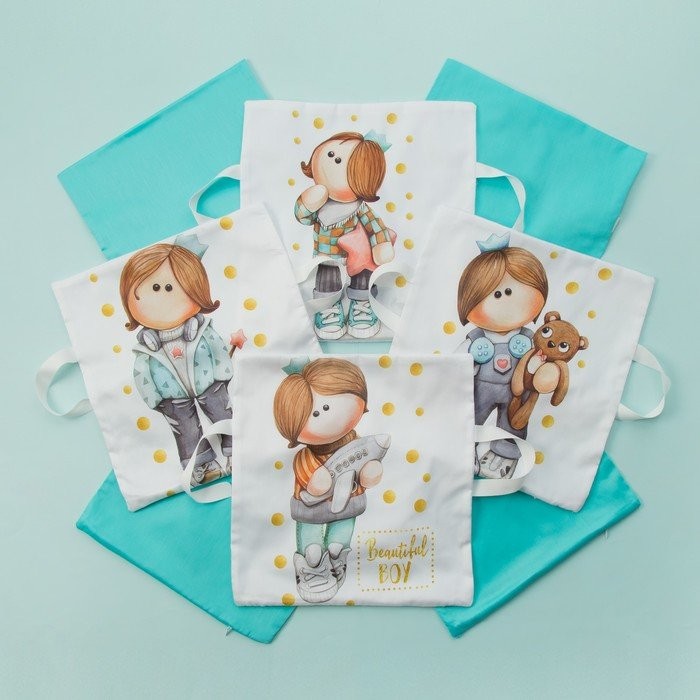 Набор наволочек Крошка Я «Принц Тим» цв. белый/мятный 35*35 см-8 шт, сатин