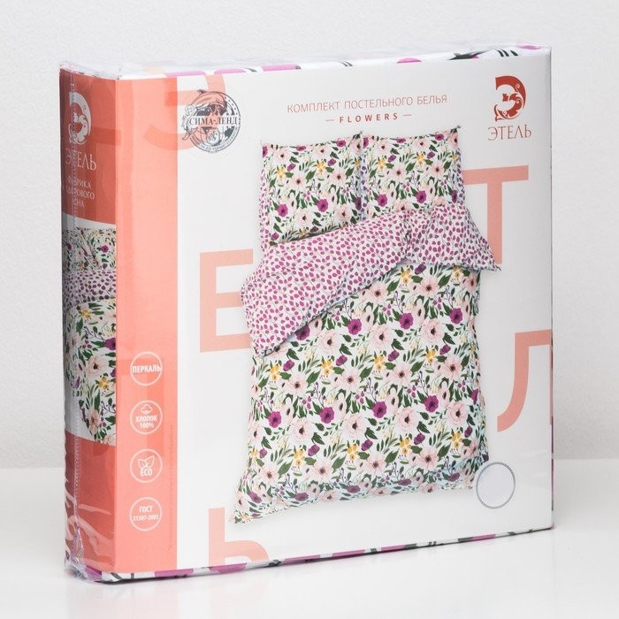 Постельное бельё Этель 2сп Flowers 175×215 см, 200×220 см, 70×70 см-2шт, 100% хлопок, перкаль
