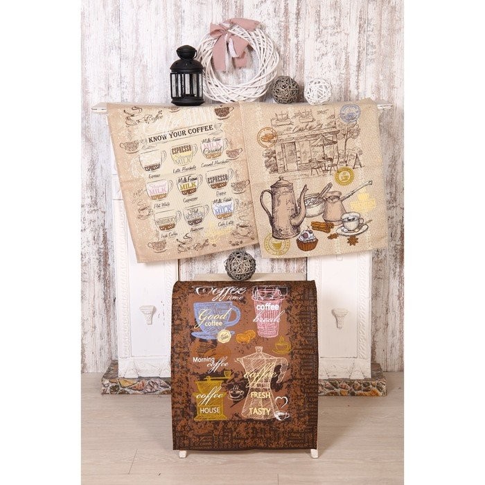 Полотенце 45×60 см, Кофейня, рогожка, 170 гр/м2, хлопок 100%