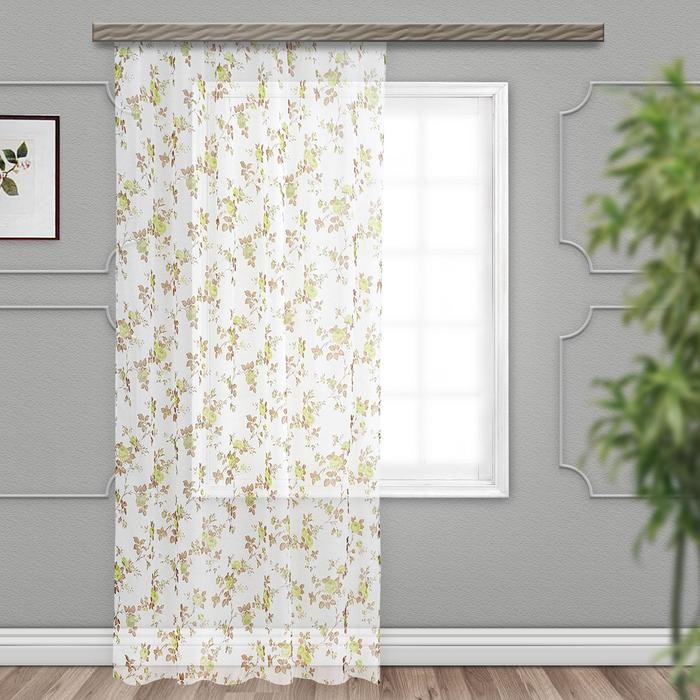 Тюль вуаль-печать «Кустовая роза» 300×260 см, зелёный, пэ 100%