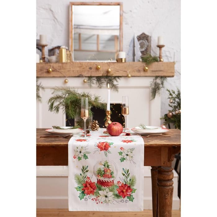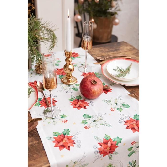 Дорожка на стол Christmas red flowers 40*147 см, 100% хл, саржа 190гр/м2