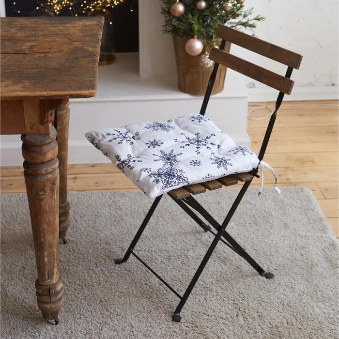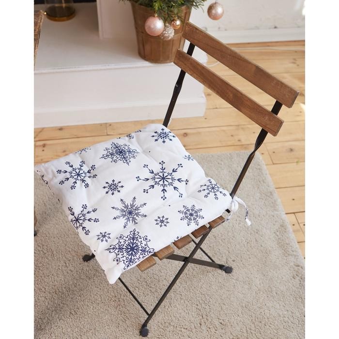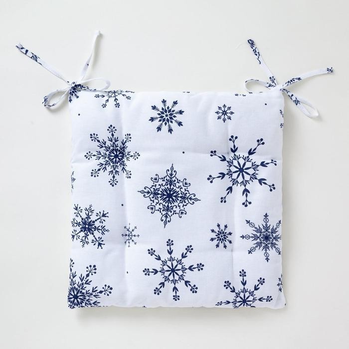 Сидушка на стул «Синие снежинки» 42х42×5 см, 100% хлопок, 164 г/м2