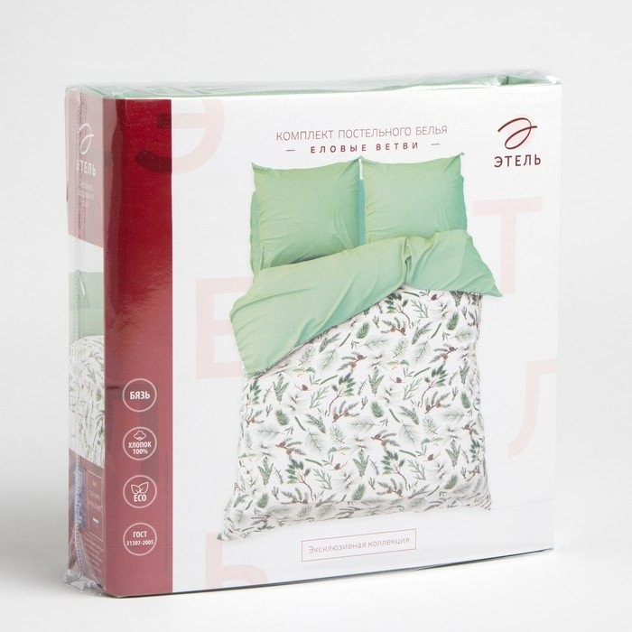 Постельное белье «Этель» 2 сп Еловые ветви 175*215 см, 200*220 см, 70*70 см — 2 шт