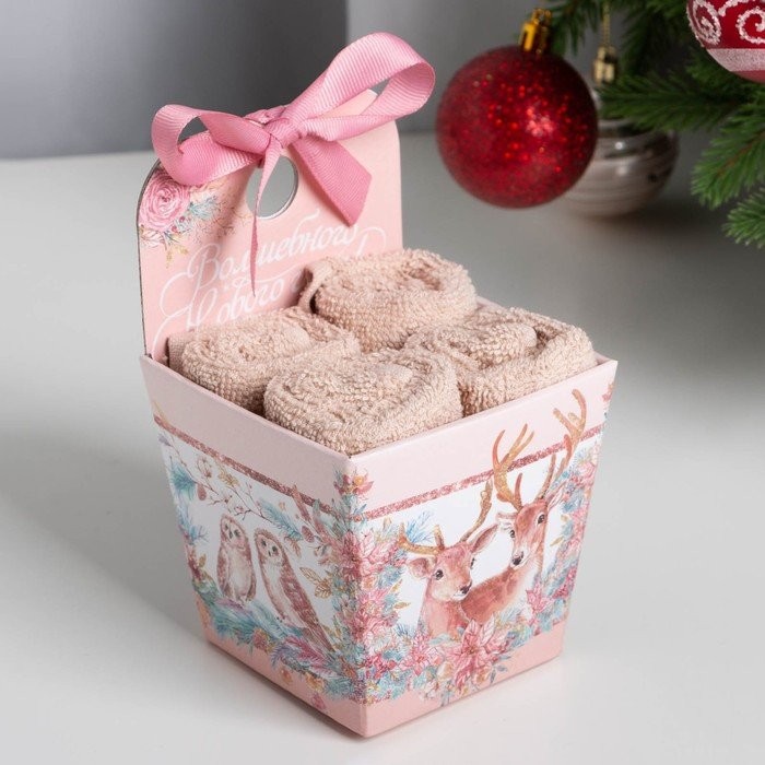 Набор махр. полотенец «Волшебного Нового года» 30×30 см-4шт, хл 340г/м2