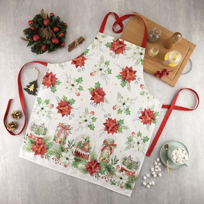 Фартук «Этель» Christmas red flowers 60х70см, 100% хл, саржа 190 гр/м2