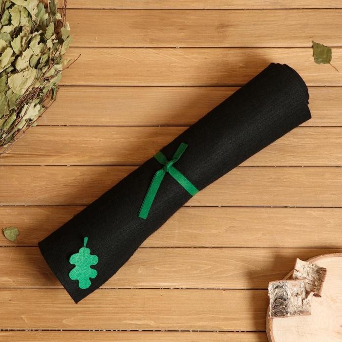Коврик для бани 150×50 см с аппликацией «Дубовый лист» черный