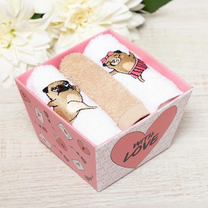Набор полотенец «Мопсики» 30×30 см-3шт, 100% хлопок 340 гр/м2