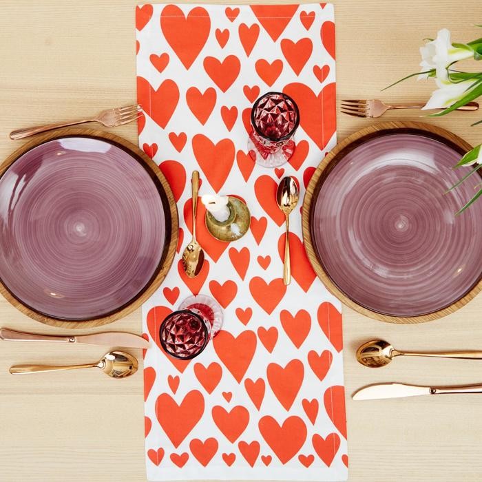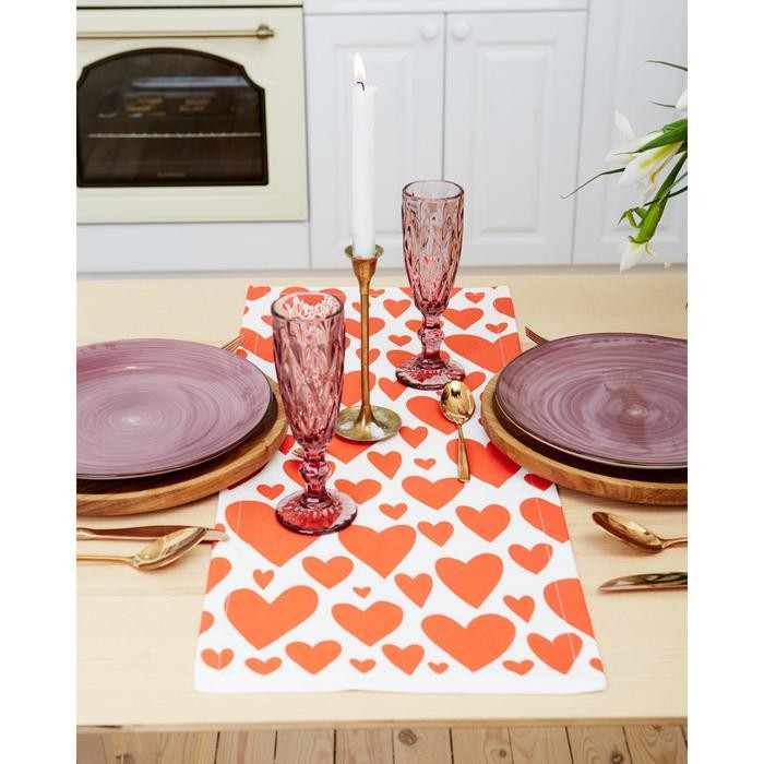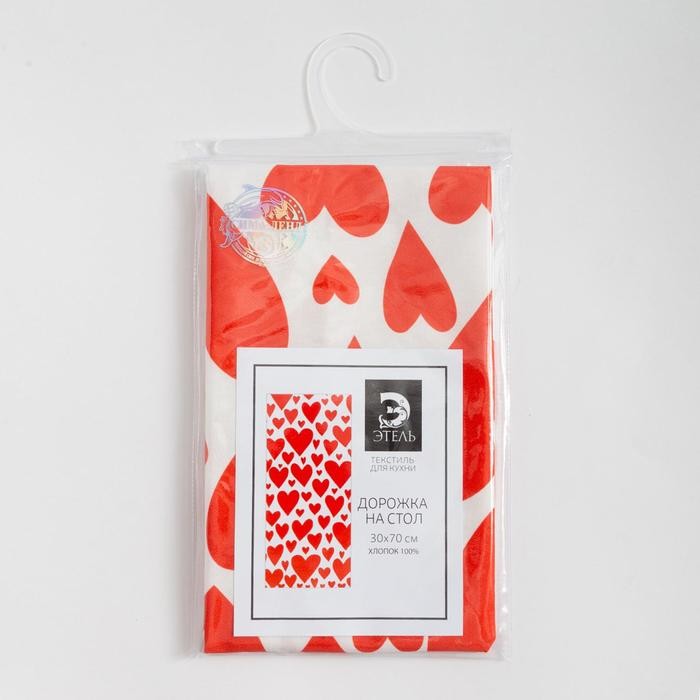 Дорожка на стол «Этель» Red hearts 30х70см, 100% хл, саржа 190 г/м2