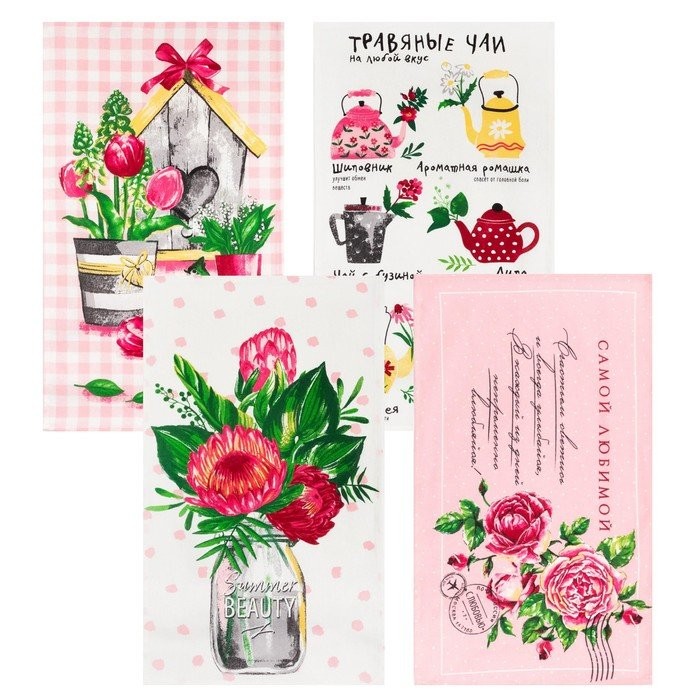 Набор кухонных полотенец Доляна «Самой любимой», 35х60см-4шт, 100% хл