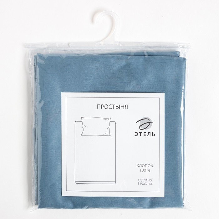Простыня Этель 220*235 см, цв.небесный, 100% хлопок, мако-сатин, 125 г/м²