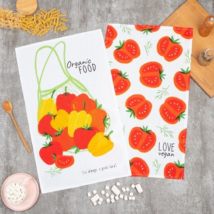 Набор кухонных полотенец Доляна Love vegan, 35х60см-2шт, 100% хл