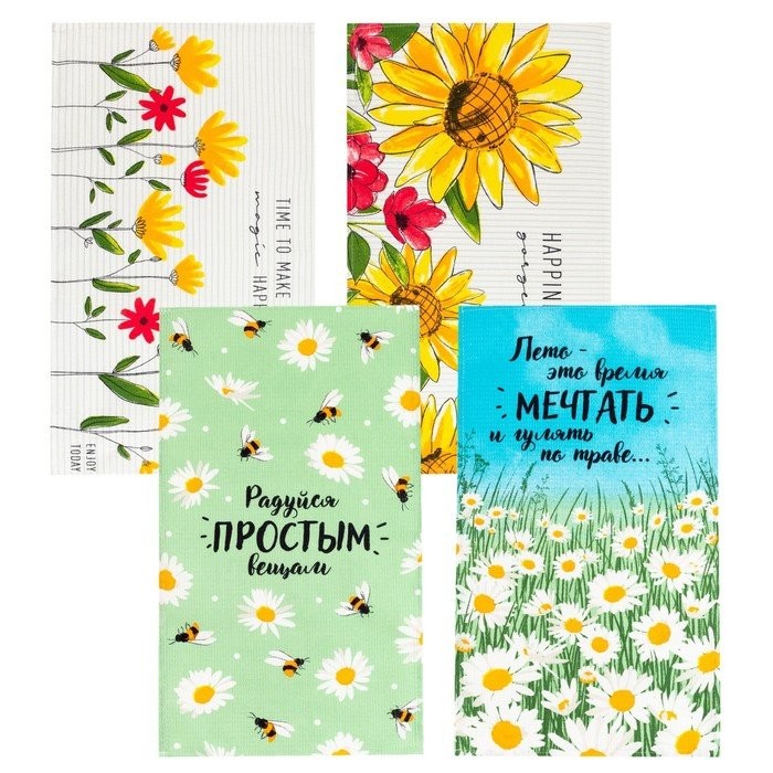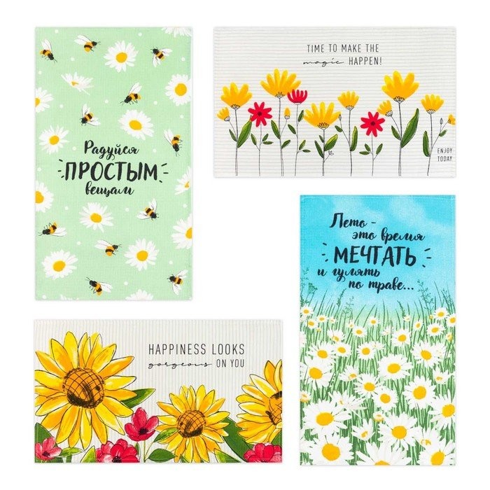 Набор кухонных полотенец Доляна Enjoy today 35х60см-4шт, 100% хл