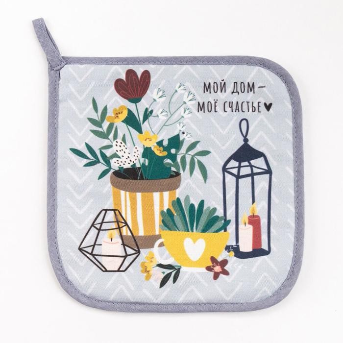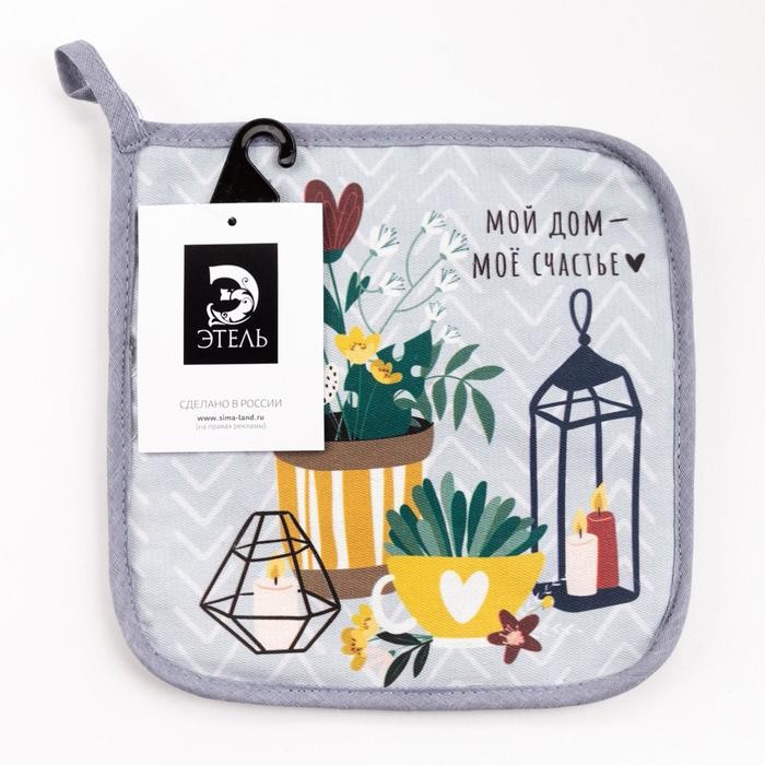 Прихватка «Мой дом — мое счастье» 19×19 саржа,100% х/л,ватин 250г/м2