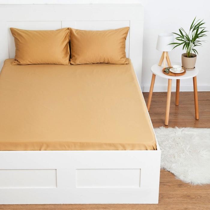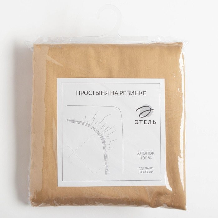Простыня на резинке Этель 200*220*25 см, цв.песчаный, 100% хлопок, мако-сатин, 125 г/м²