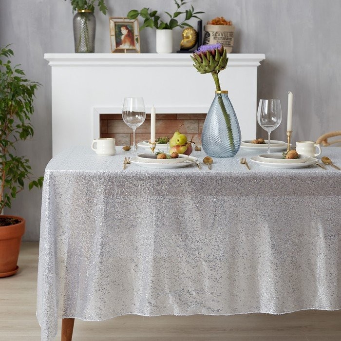 Скатерть с пайетками, цв.серебро, 300*300 см
