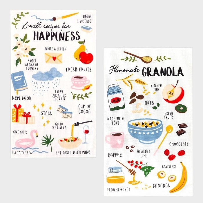 Набор кухонных полотенец Доляна «Рецепты счастья», 35х60см-2шт, 100% хл